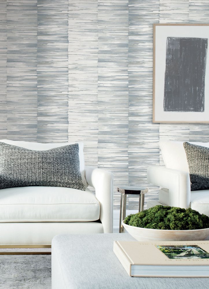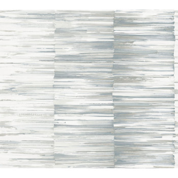 Hladká vliesová tapeta na zeď, pruhy a proužky v odstínech šedo-modré a béžové.