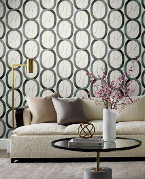 Geometrická vliesová tapeta, černý oválný vzor OS4213, Modern Nature II, York