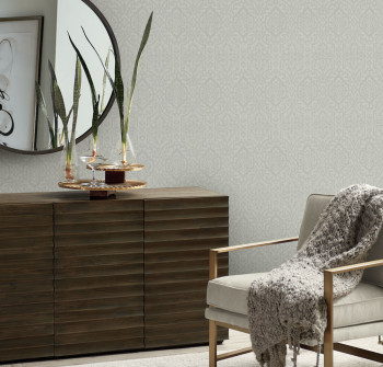Šedobílá předklížená zámecká tapeta na zeď DM5036, Damask, York