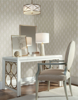 Béžová předklížená tapeta, damaškový vzor DM5025, Damask, York