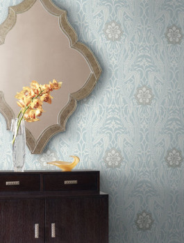 Modro-bílá předklížená tapeta - květiny, ornamenty DM4991, Damask, York