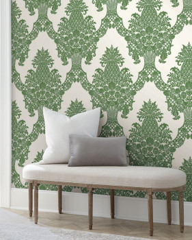 Zelenobílá předklížená tapeta, ornamenty DM4976, Damask, York