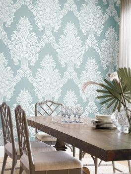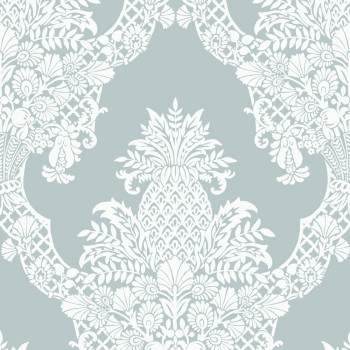Tyrkysová předklížená tapeta, ananas, ornamenty DM4973, Damask, York