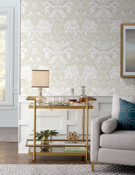 Krémová předklížená tapeta s ornamenty DM4956, Damask, York