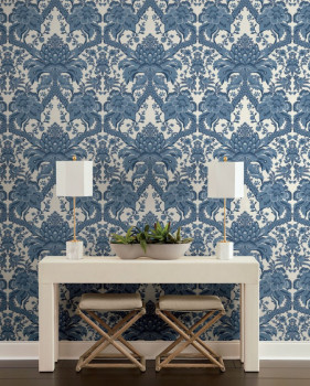 Modrobílá předklížená tapeta na zeď, ornamenty DM4951, Damask, York