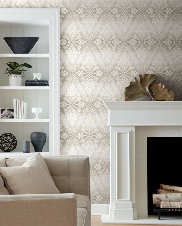 Šedobéžová předklížená tapeta, damaškový vzor, DM4933, Damask, York