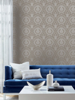 Hnědá předklížená zámecká tapeta na zeď DM4902, Damask, York