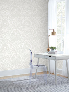 Šedobílá předklížená tapeta, ornamenty, ptáci BW3932, Damask, York