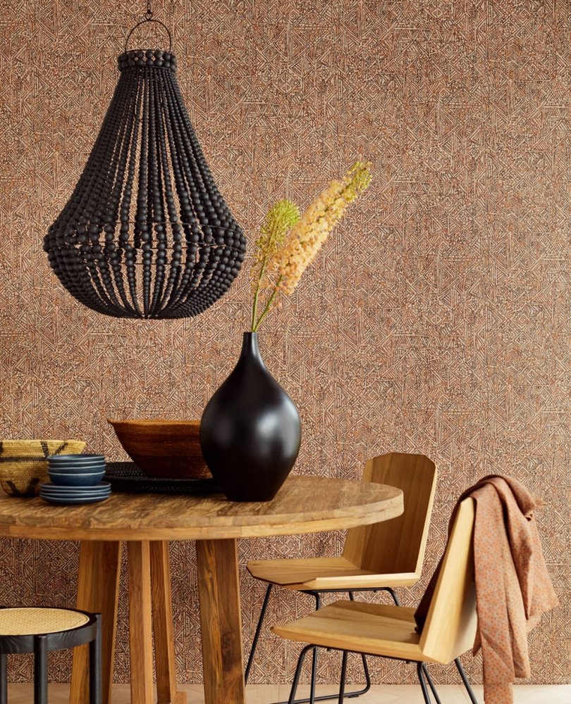 Vliesová tapeta. Jemně plastická textura, design etnických kreseb v zemitých odstínech.