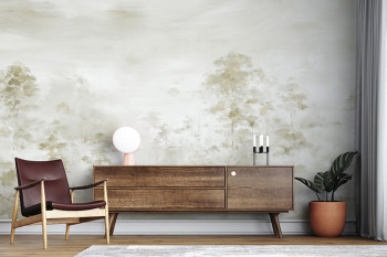 Vliesový 5ti dílný panel s motivem abstraktních stromků v mlze v béžových odstínech.