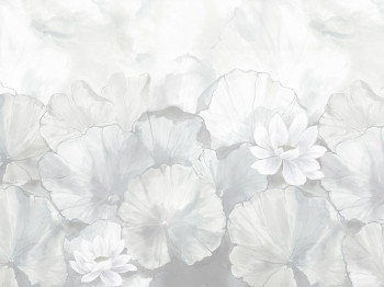 Vliesový 5ti dílný panel s motivem květů s listy v šedých odstínech.