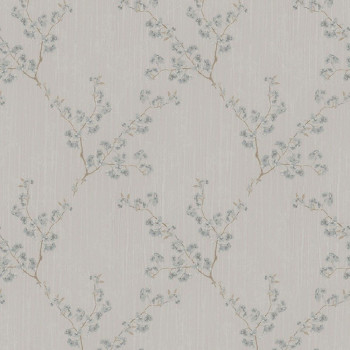 Vliesová tapeta na zeď s vinylovým povrchem se vzorem a strukturou jemných pruhů s květy v modrých a béžových odstínech.