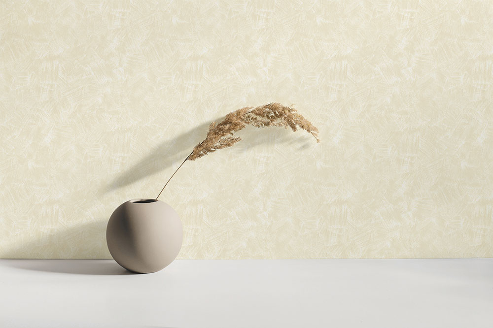 Vliesová tapeta na zeď s vinylovým povrchem v béžových odstínech s imitací stěrky.