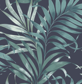 Vliesová tapeta s motivem zelených palmových listů na černém podkladu vytvoří v interiéru příjemnou atmosféru.