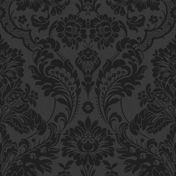 Luxusní černá vliesová tapeta s flockovými ornamenty.