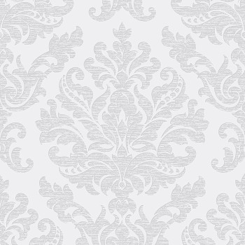 Luxusní vliesová tapeta ve světle šedé barvě s metalickými ornamenty.