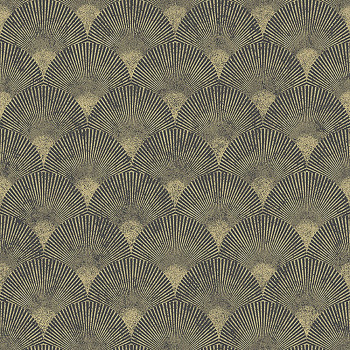 Luxusní vliesová tapeta v černé barvě se zlatými metalickými ornamenty.
