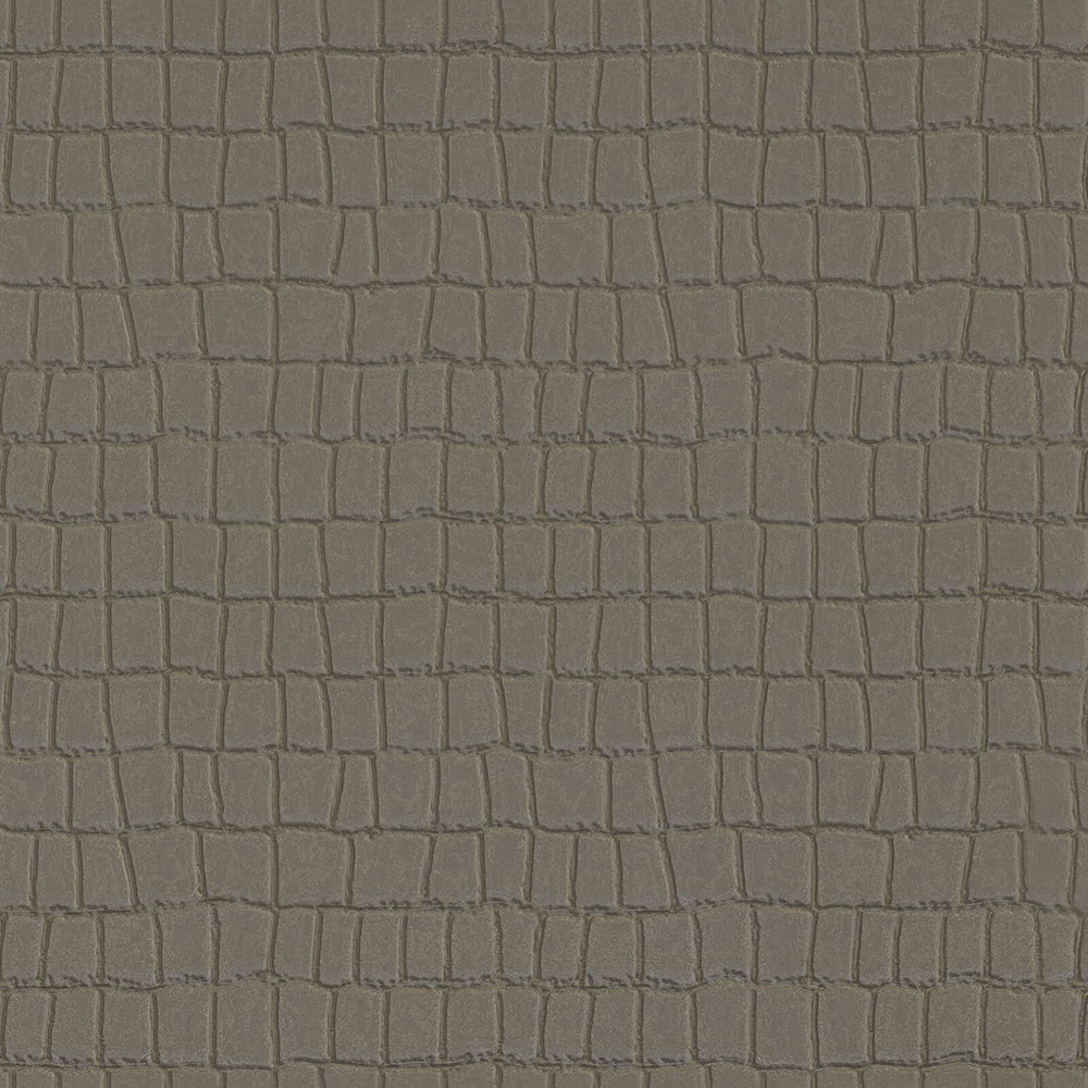 Luxusní geometrická vliesová tapeta s vinylovým povrchem imitující kůži krokodýla v metalické zlato-stříbrné barvě.