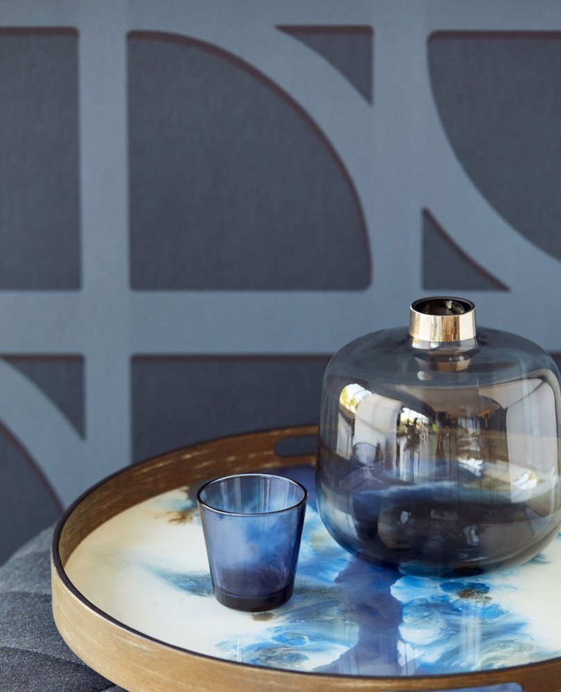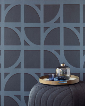 Vliesová tapeta s výrazným geometrickým vzorem v modrých odstínech.