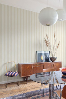 Vliesová tapeta na zeď, pruhy, imitace proužkované látky v béžových odstínech.
