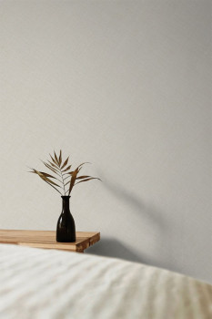 Vliesová tapeta s vinylovým povrchem, imitace látky v odstínech bílo-krémové.