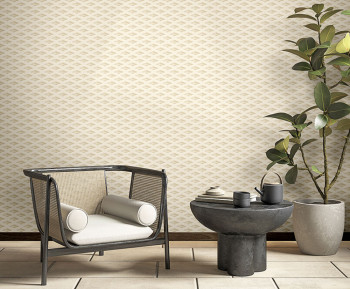 Luxusní plastická vliesová tapeta s vinylovým povrchem, odstíny béžové a krémové s metalickým pololeskem.