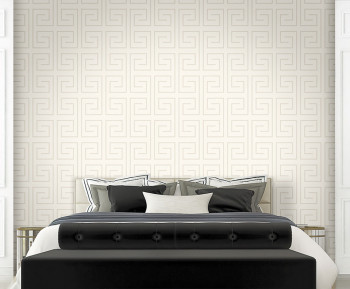 Luxusní vliesová tapeta s vinylovým povrchem, krémová, plastický geometrický vzor s perlovým pololeskem.