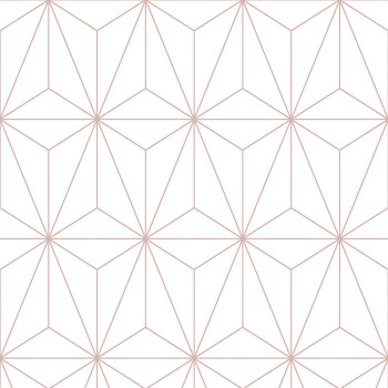 Bílá vliesová tapeta s papírovým povrchem, geometrický vzor, linie růžové zlato.