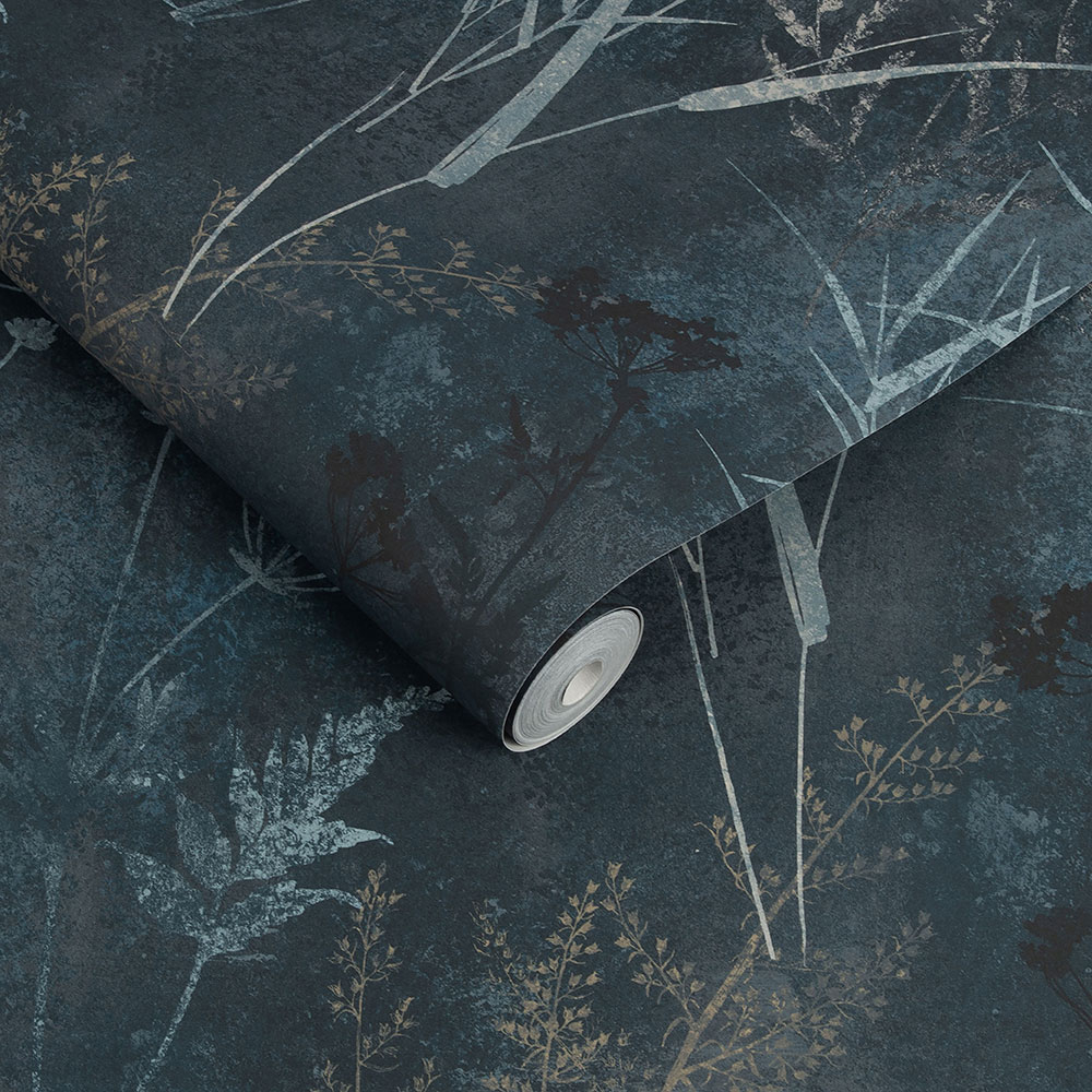 Modrá vliesová tapeta na zeď, listy 115044, Reclaim, Graham&Brown