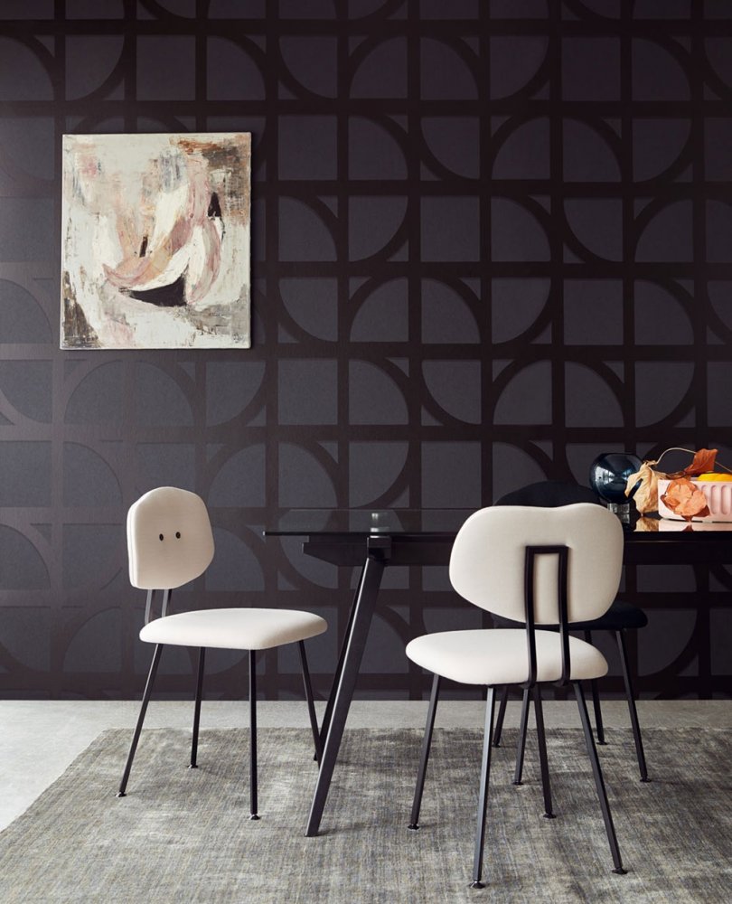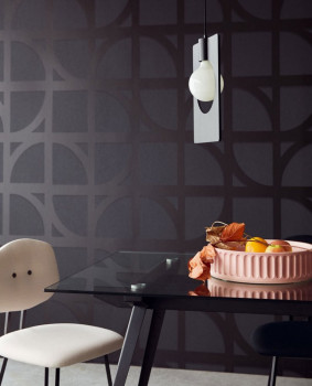 Vliesová tapeta s výrazným geometrickým vzorem. Podklad černý matný, vzor elegantní pololesk.