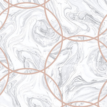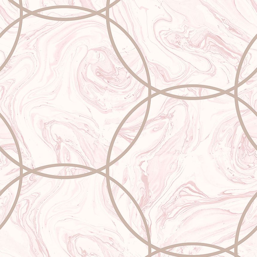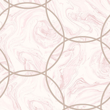 Vliesová tapeta s hladkým papírovým povrchem, růžový mramor, metalické kruhy růžové zlato.