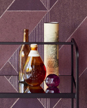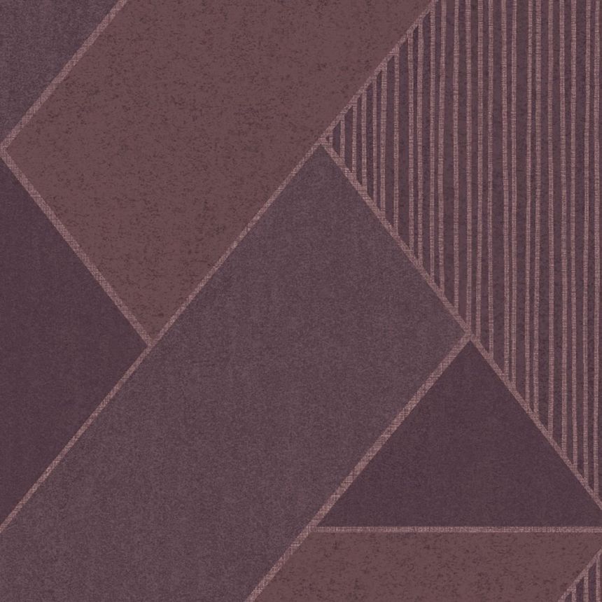 Vliesová tapeta. Geometrický design ve stylu Art Deco - linie jemně metalický pololesk, odstíny vínové mat/pololesk.
