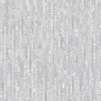 Šedo-stříbrná vliesová tapeta na zeď, design inspirovaný březovou kůrou, hladký papírový povrch.