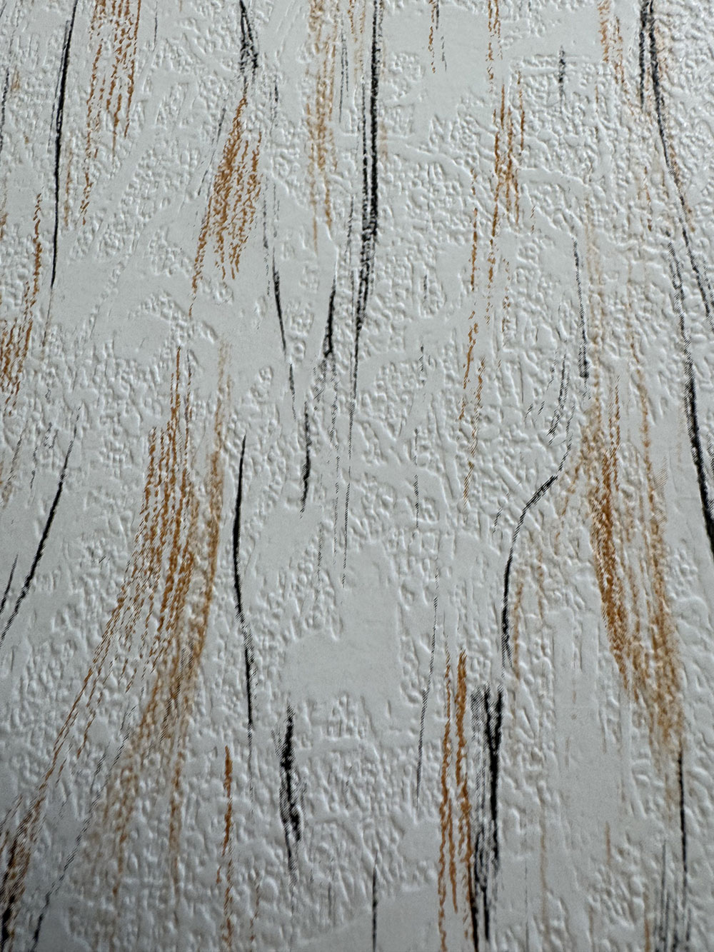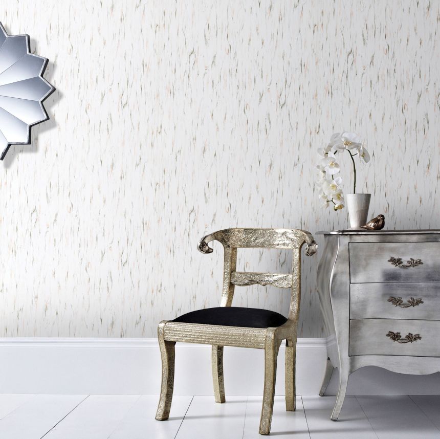 Klasické papírové tapety s decentním vzorkem jsou stálicí interiérového designu. Papírová tapeta na zeď - bílý podklad s barevným černým a hnědým žíháním. Povrch je hladký pololesklý.