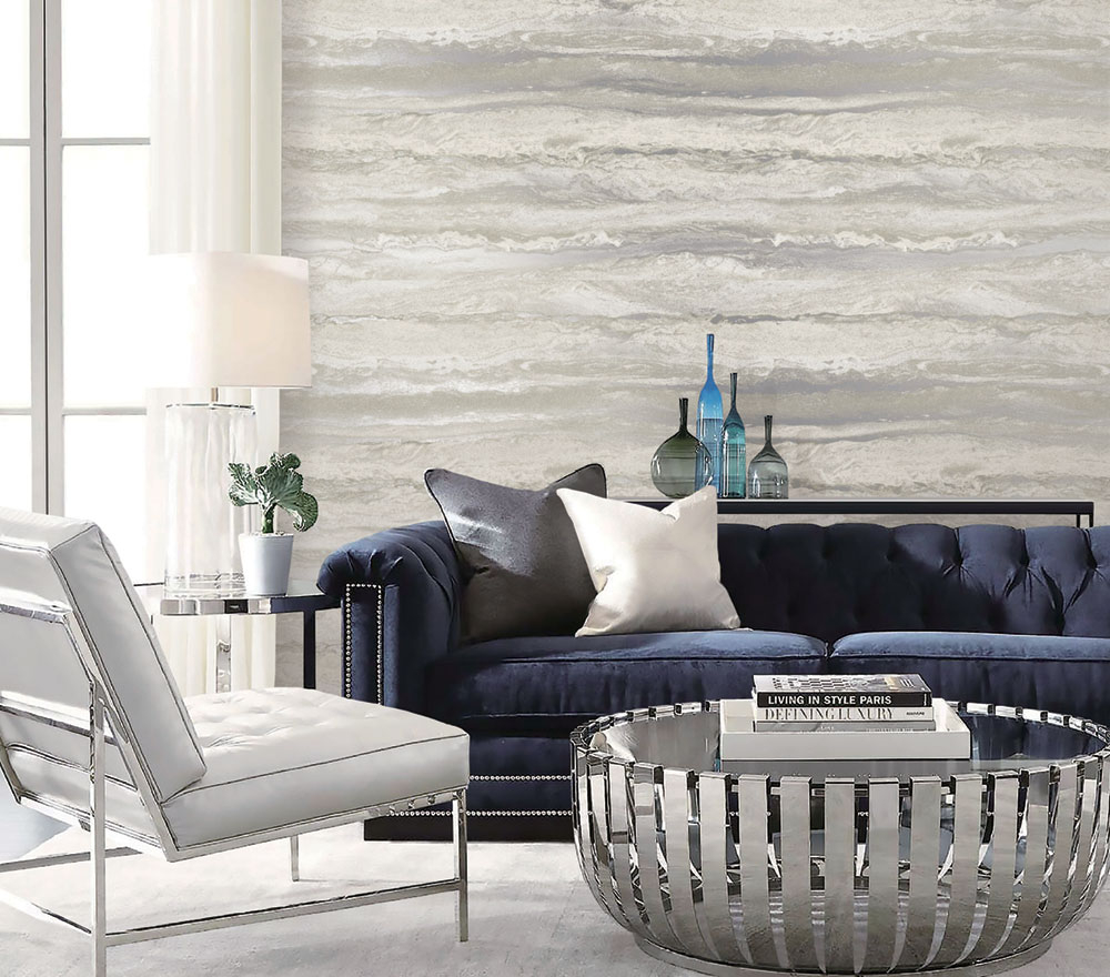 Luxusní krémově-stříbrná vliesová mramorovaná tapeta na zeď. Tapeta vhodná do obývacího pokoje, ložnice, pracovny.