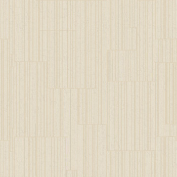 Luxusní krémově-stříbrná vliesová tapeta na zeď. Proužky na tapetě tvoří geometrické vzory.