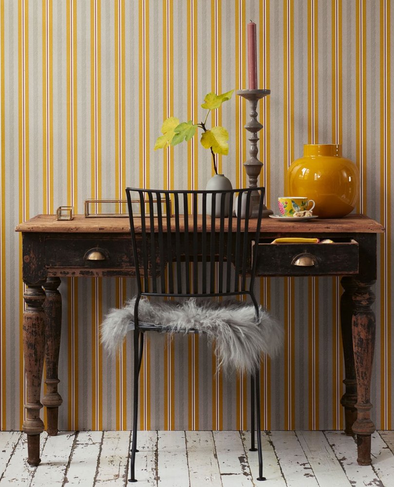 Vlisová tapeta s jemně plastickou texturou. Proužky v odstínech pískové a okrové.