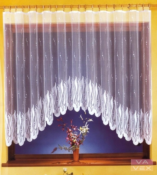 • S hotovými kusovými záclonami můžete proměnit vzhled interiéru za pár minut! Záclony jsou skvělým prostředkem k zútulnění a dotvoření stylu vašeho domova. Kromě toho přináší i praktické výhody, jako je lehké tlumení zvuků z ulice či rozptýlení ostrých slunečních paprsků. Hodí se do každého interiéru a je díky velkému množství typů a vzorů můžete dát prostor svojí kreativitě. Záclona  je bílá, vyrobena z 100% polyesteru. Díky střižení do oblouku působí romanticky a domácky. Můžete ji bez problémů prát v pračce.