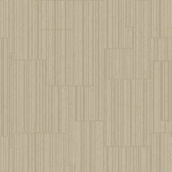 Luxusní béžovo-zlatá vliesová tapeta na zeď. Proužky na tapetě tvoří geometrické vzory.