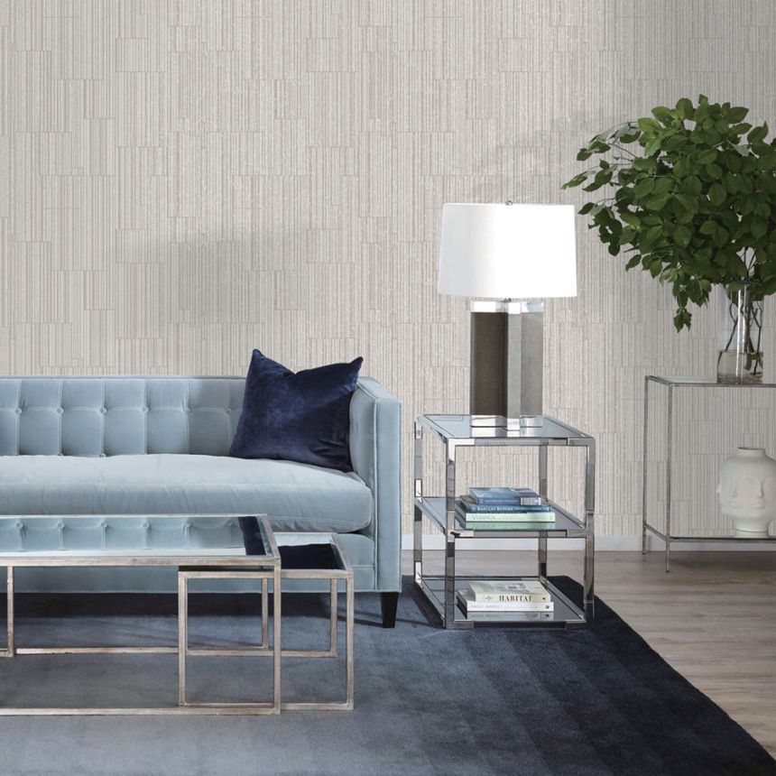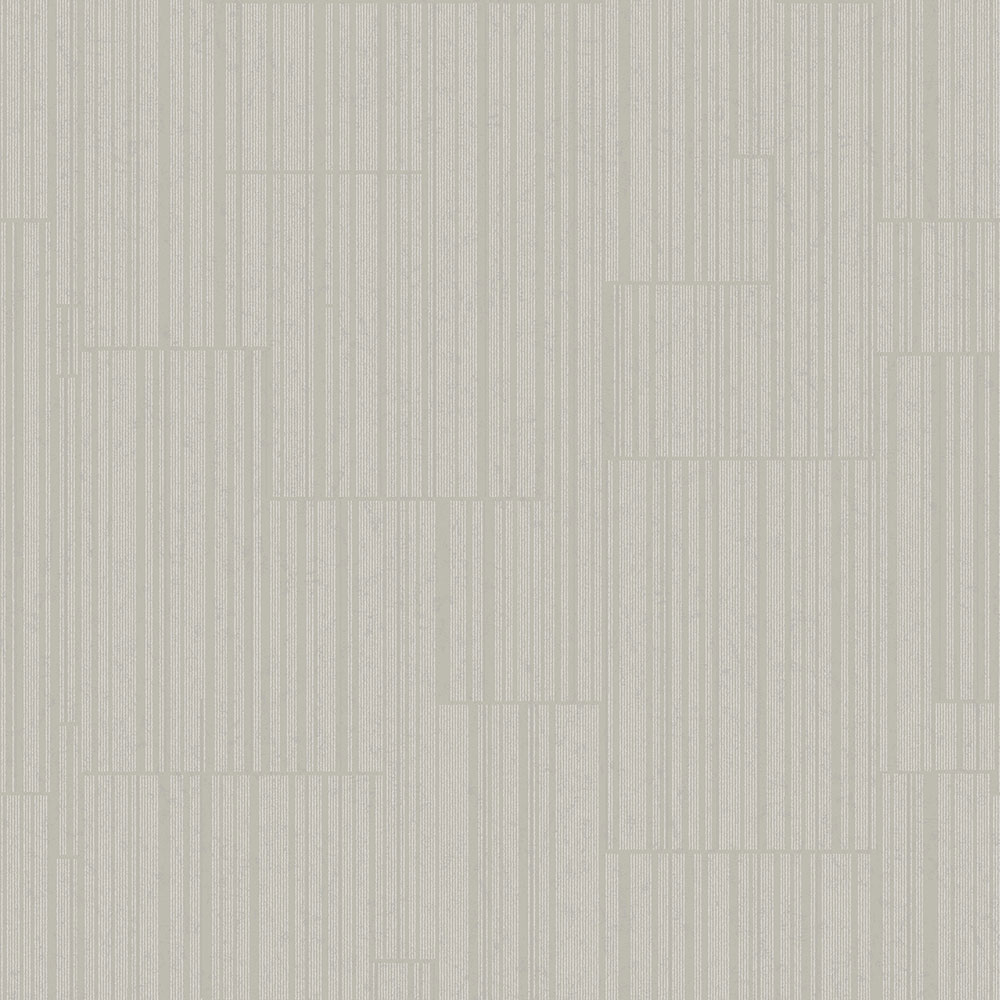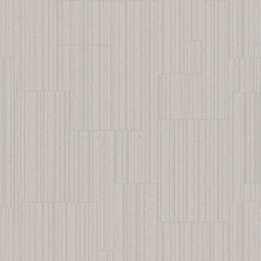 Luxusní šedo-stříbrná vliesová tapeta na zeď. Proužky na tapetě tvoří geometrické vzory.
