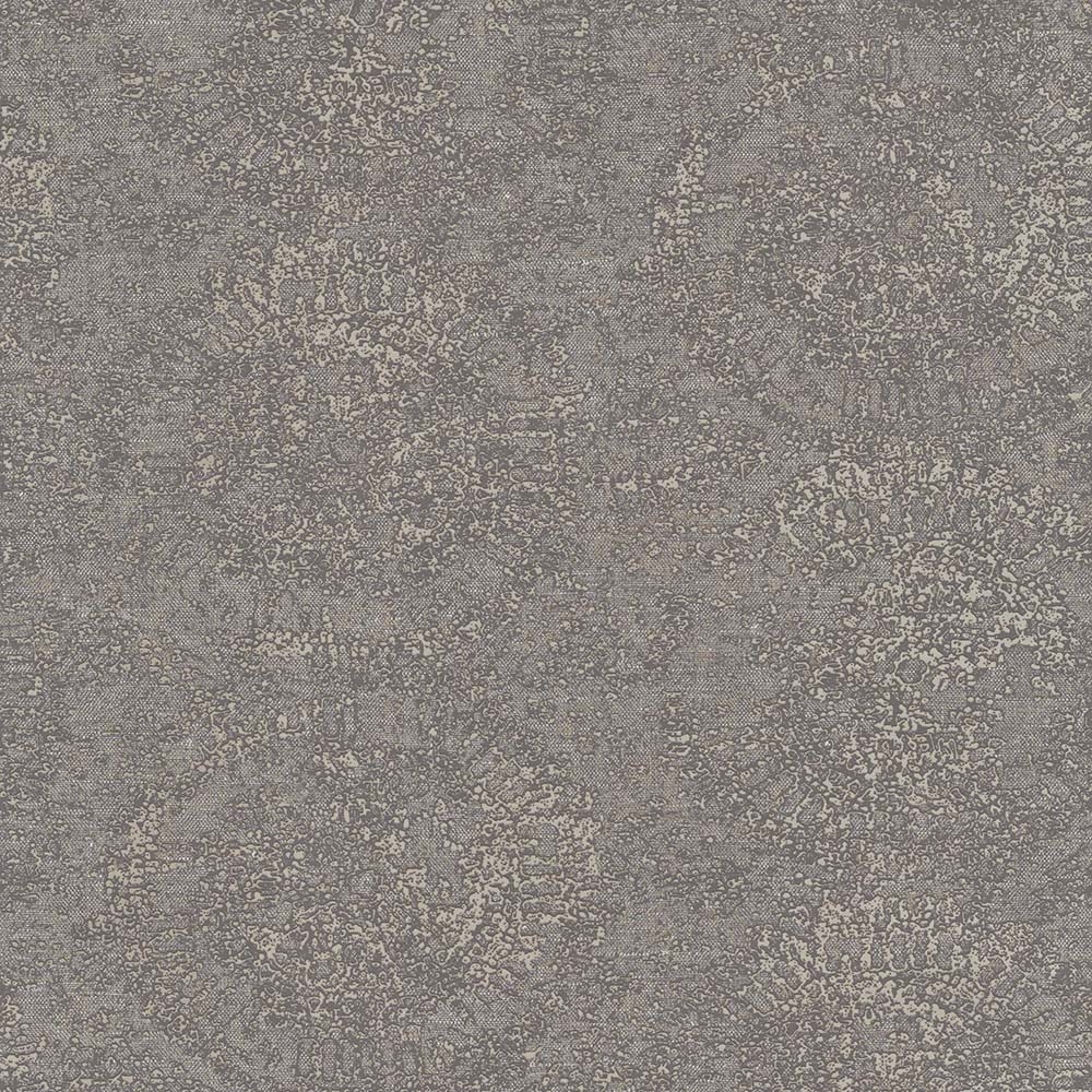Béžový metalický nepravidelný vzor na hnědé vliesové tapetě s látkovou strukturou.