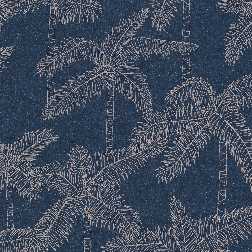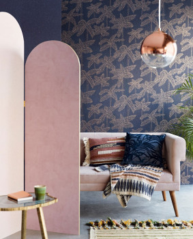 Rostlinné motivy představují moderní trend v oblasti bydlení. Bronzové obrysy palem na krémové jemně žíhané vliesové tapetě na zeď.