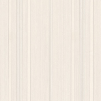 Krémovo-béžová proužková vinylová tapeta s metalickými odlesky. Vzhled tkaniny.