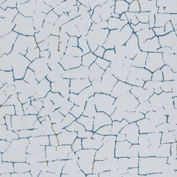 Nepravidelné křivky v metalické modré na šedo-modré vliesové tapetě.