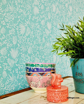 Tyrkysová vliesová tapeta s květinami a listy 383542, Rice 2, Eijffinger