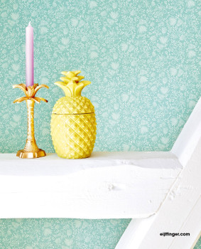Elegantní jemně plastický rostlinný design - bílý vzor na hladkém tyrkysovém podkladu.
