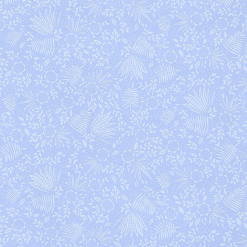 Elegantní jemně plastický rostlinný design - bílý vzor na hladkém modrém podkladu.