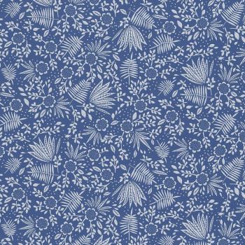 Elegantní jemně plastický rostlinný design - bílý vzor na hladkém tmavě modrém podkladu.