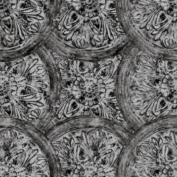 Metalické efekty dodají vašim stěnám luxus a styl. Luxusní tapeta ve vintage stylu. Historické zdobené rozety v černé a stříbrné.