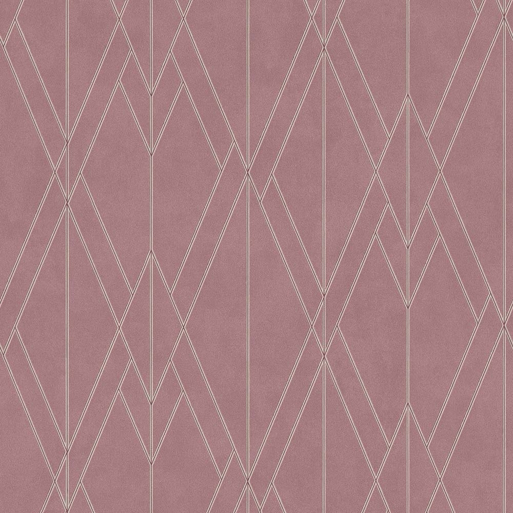 Starorůžová tapeta s vínovou linkou v metalických prolisech.